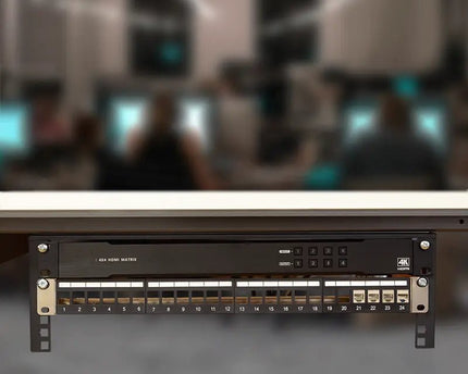 19" rack mount bracket is the perfect solution for small offices or home offices. It is also ideal for any other environment where there is no room for a 19" cabinet or not enough space in general. With this convenient wall mount, any 19" device can be mounted vertically on the wall or horizontally on the underside of a desk. Heavy devices, e.g. servers, must be fixed with two brackets when mounted horizontally, so that four support surfaces are available.