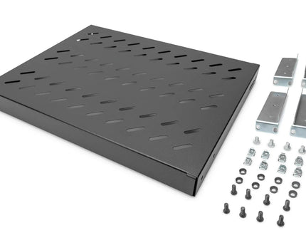 19 Inch 1U legbord voor 600 mm diepe rekken 43x483x358 mm, verstelbaar tot 550 mm diepte, zwart